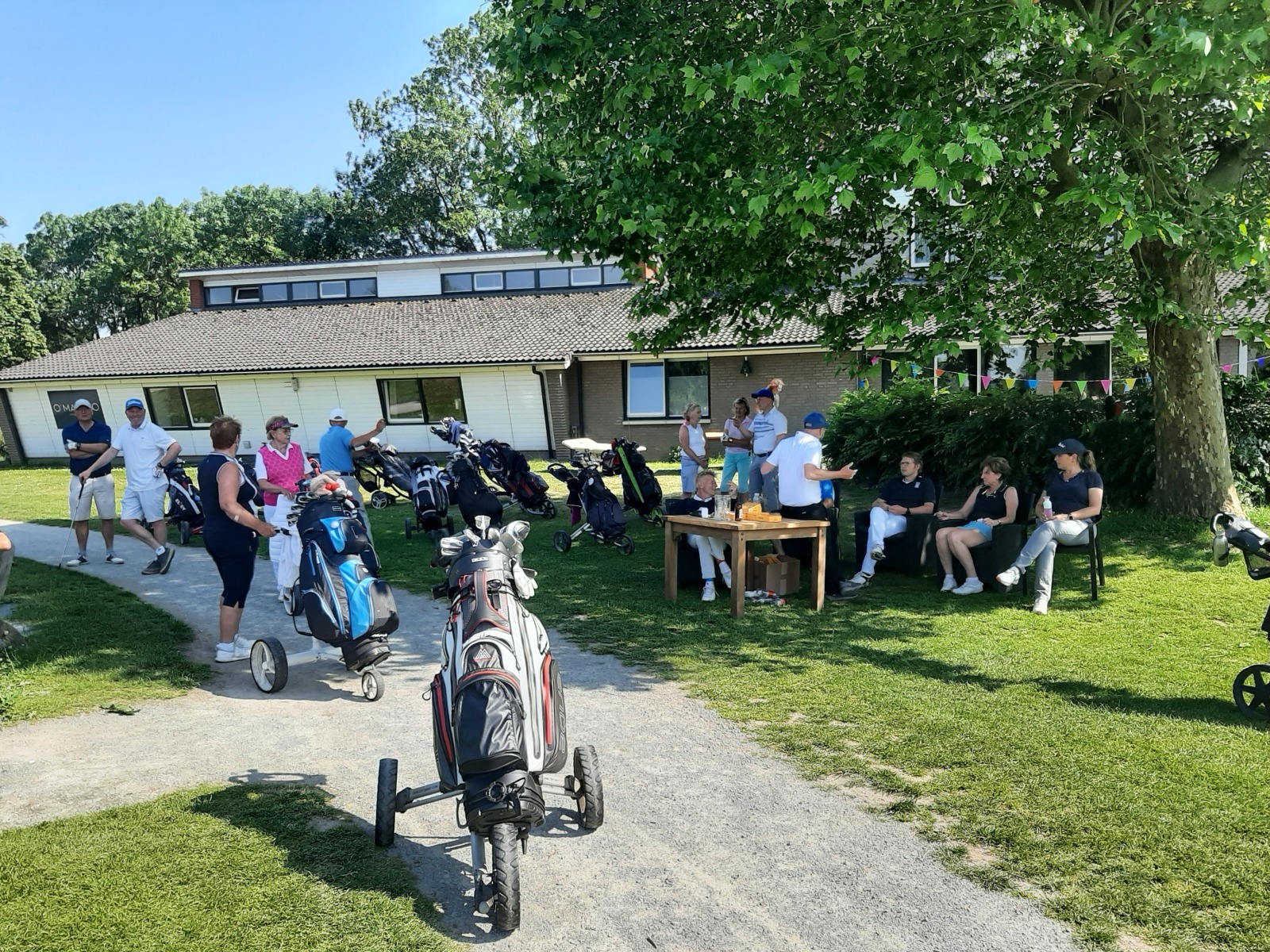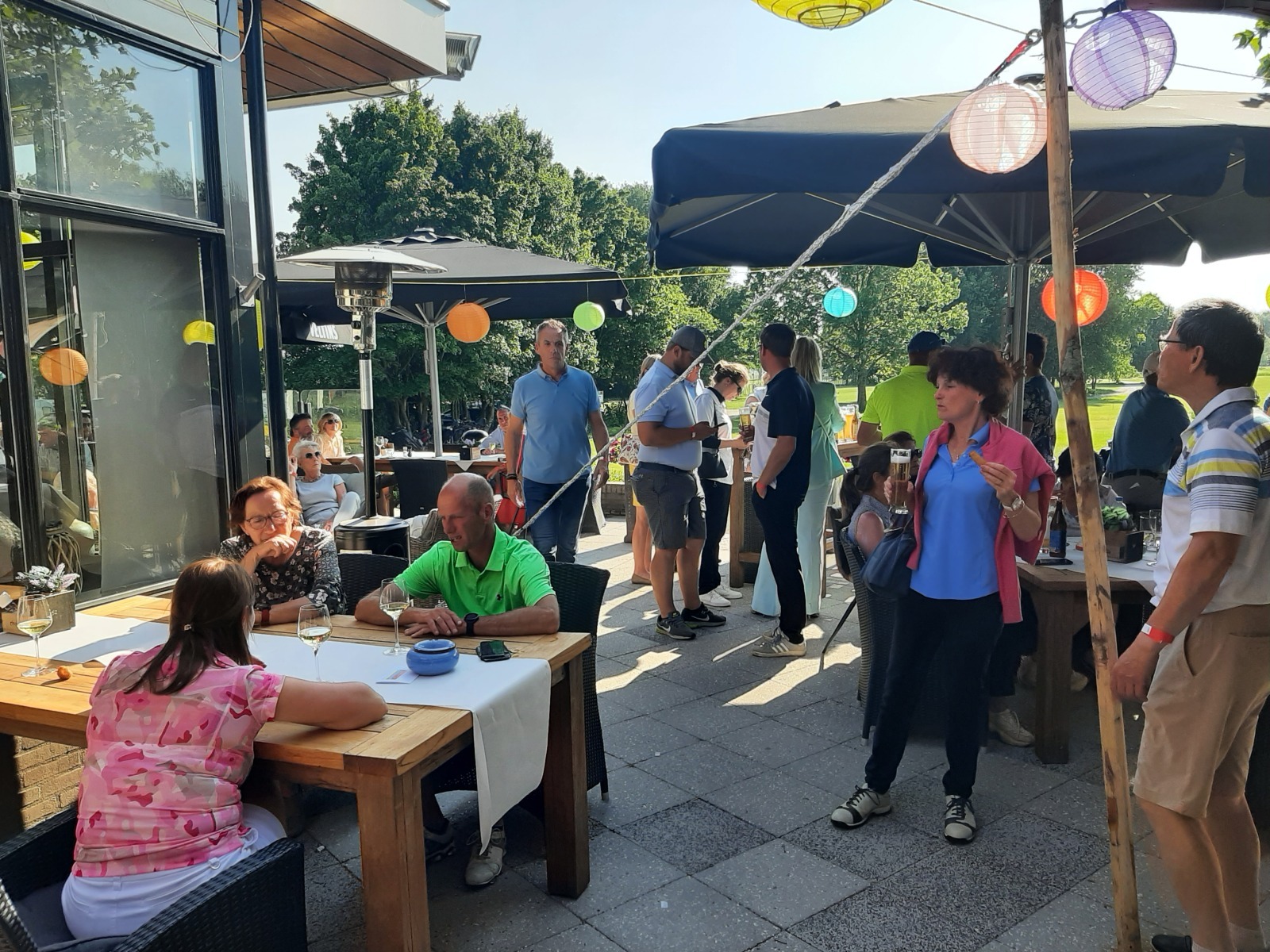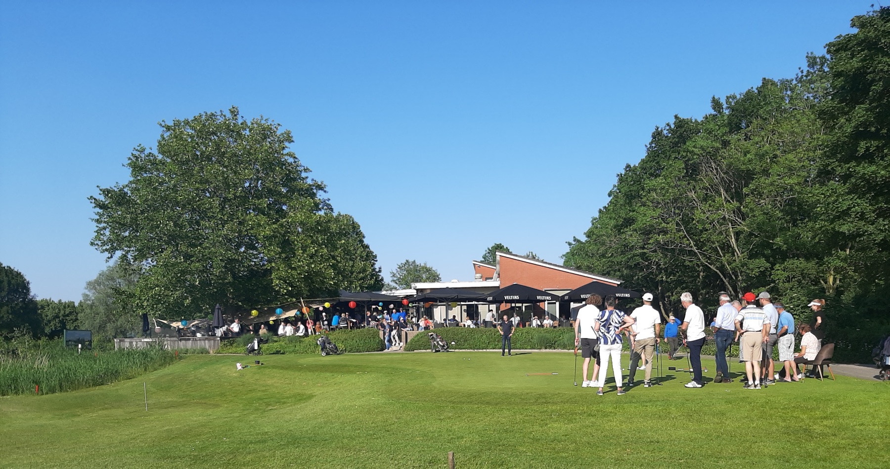 Welkom was het drankje, wrap of harinkje in de baan en bij de uitdaging op hole 11 “beat the pro” waren 2 gelukkigen die hun inzet konden verdubbelen. Bij binnenkomst onder het genot van een drankje en muzikale omlijsting van een zanger/gitarist nog een uitdaging voor “nearest to the pin” en een put wedstrijd.