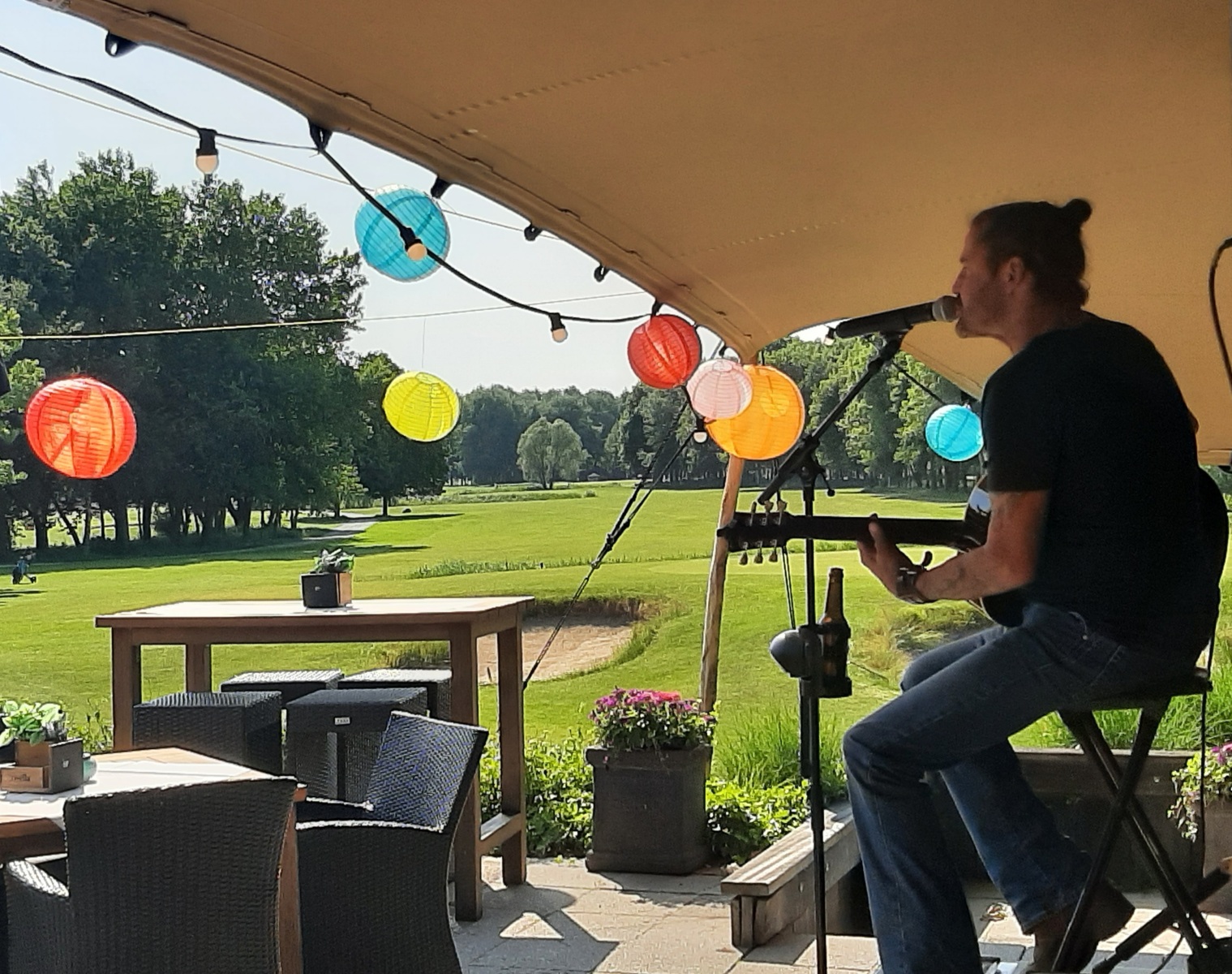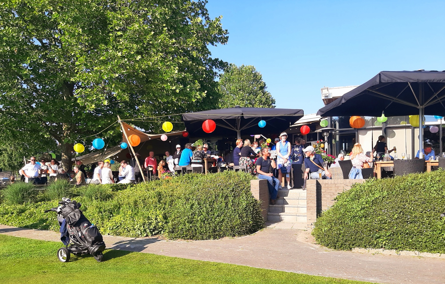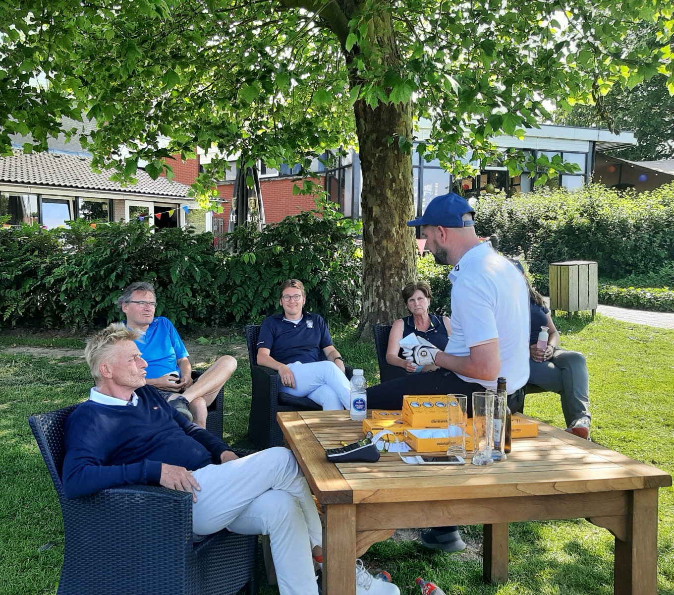 Welkom was het drankje, wrap of harinkje in de baan en bij de uitdaging op hole 11 “beat the pro” waren 2 gelukkigen die hun inzet konden verdubbelen. Bij binnenkomst onder het genot van een drankje en muzikale omlijsting van een zanger/gitarist nog een uitdaging voor “nearest to the pin” en een put wedstrijd.