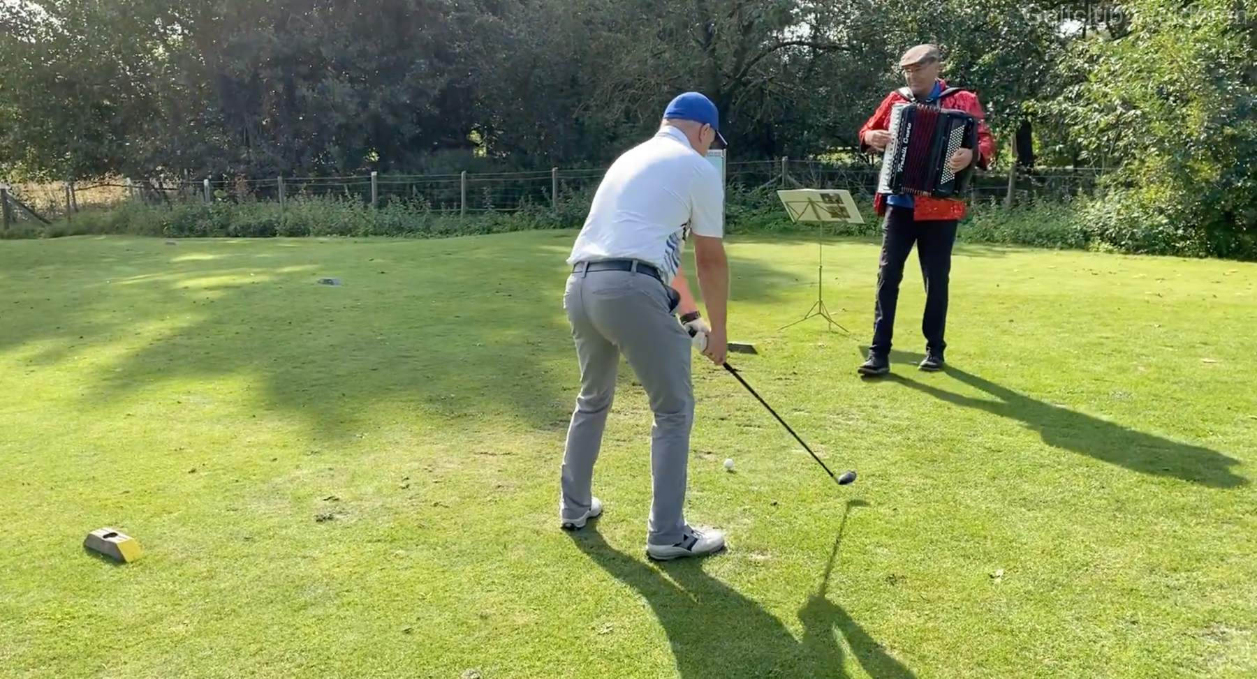 Op hole 4 aangekomen was het wel duidelijk waar al die ‘herrie’ vandaan kwam. Tegen een orkest welke bestaat uit wel 10 man kan Jacques qua decibels niet tegenop. De sfeer was goed en dus ballen die alle kanten de boomgaard invlogen konden de pret niet drukken.